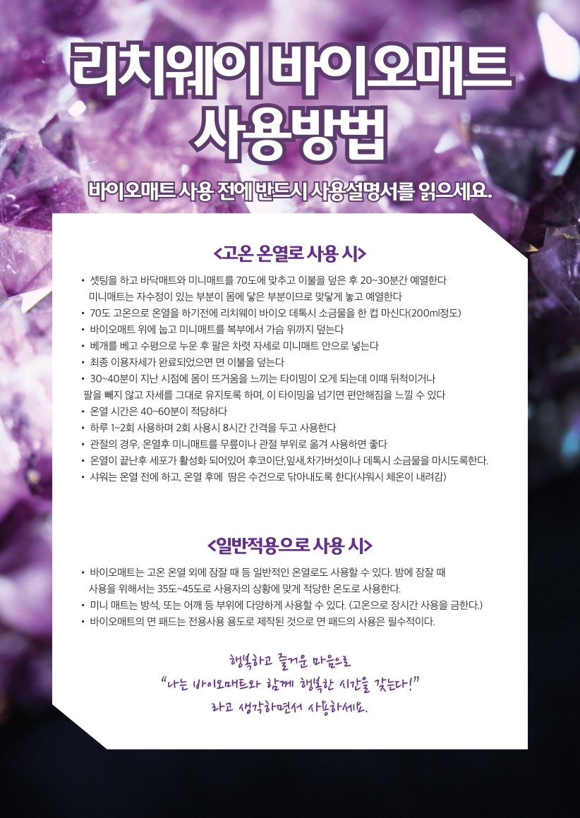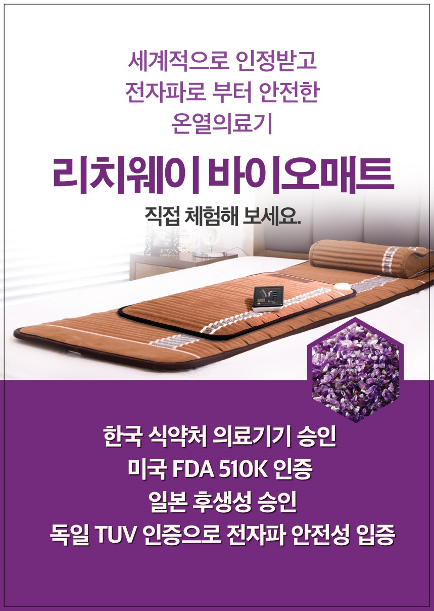 리치웨이 바이오매트는 보다 나은 삶의 질을 향상시키는데 언제나 든든한 동행이 되어 드릴 것 입니다, 지금 전화시면 원하시는 날자와 시간에 맞추어 전문 직원이 제품을 배달해드리고 관련 내용을 상세히 설명하여 드립니다, 주말이나 휴일에 제품이 필요하신 경우에는 금요일 오전 중에 미리 예약을 하시기 바랍니다,